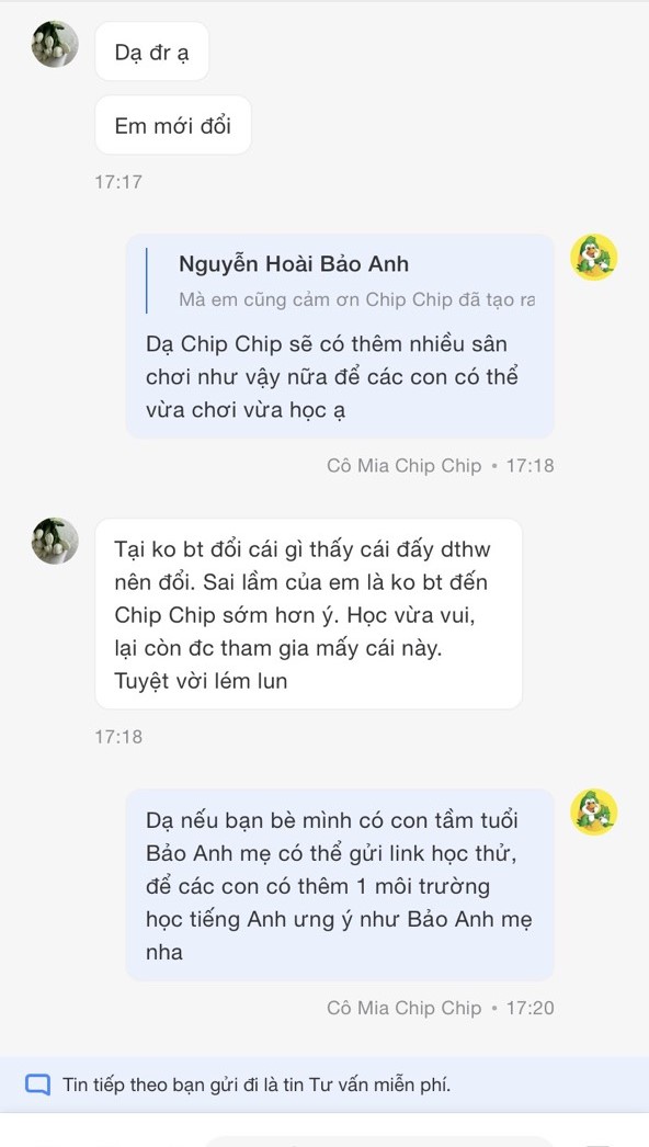 Chip Chip luôn đặt ra tiêu chuẩn phục vụ cao nhất đối với học sinh và phụ huynh